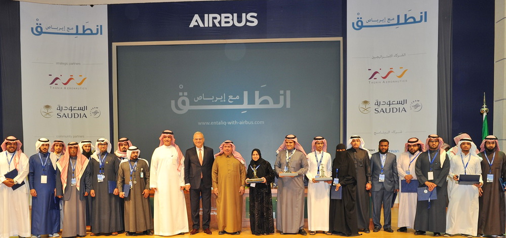 أعلنت شركة إيرباص الشرق الأوسط، عن أسماء الفائزين في برنامج “انطلق مع إيرباص” خلال الحفل الختامي لتكريم المتأهلين للمرحلة النهائية من البرنامج وتتويج أفضل ثلاثة فرق، وذلك بحضور رئيس مدينة الملك عبدالعزيز للعلوم والتقنية (KACST) ورئيس مجلس إدارة شركة تقنية الأمير تركي بن سعود بن محمد آل سعود. وتم تنظيم الحفل من قبل الشركة، الذي استضافته المدينة، بحضور شركاء البرنامج الاستراتيجيين، من أبرزهم تقنية للطيران، والخطوط الجوية العربية السعودية، والشركاء الذين ساهموا في نشر البرنامج ضمن أوساطهم بالإضافة الى عدد من كبار شخصيات ومتخصصي قطاع الطيران.