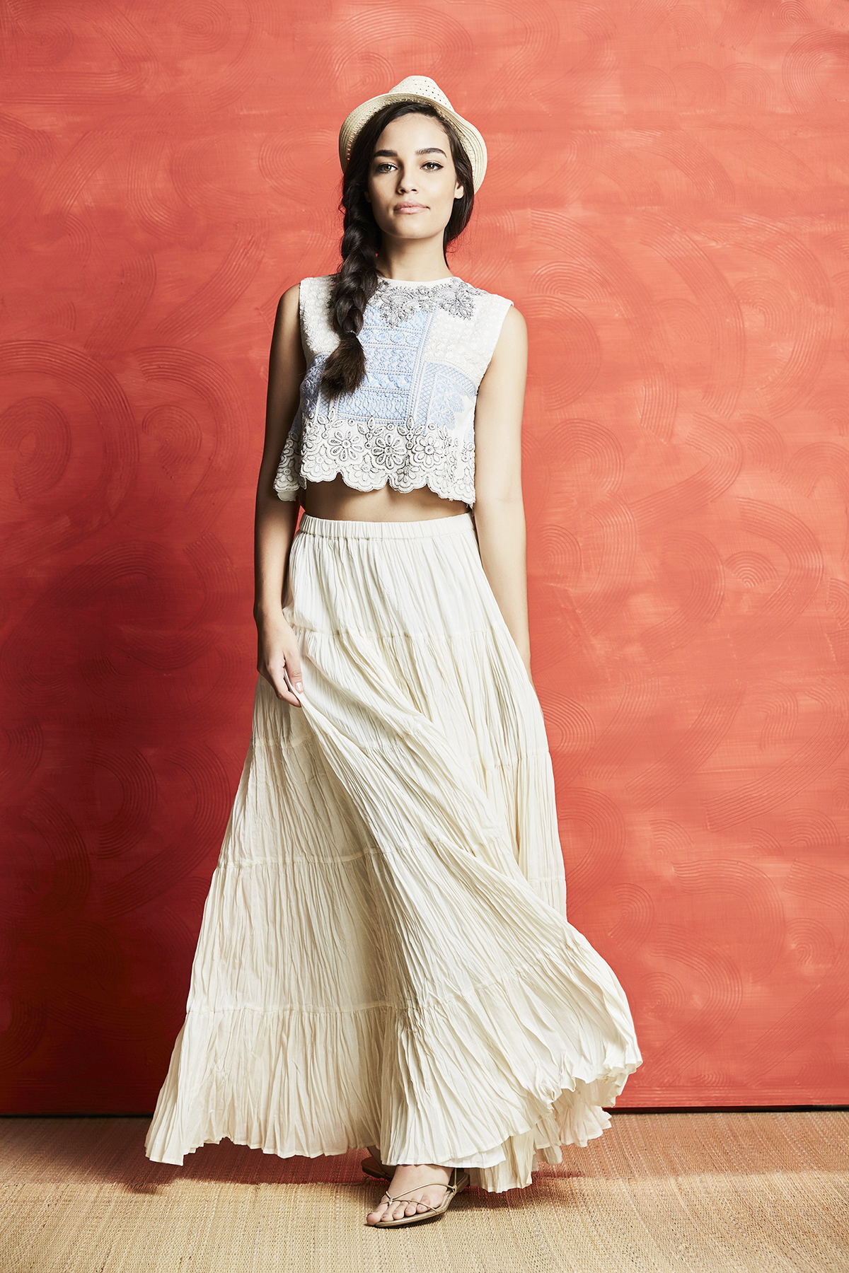 أطلقت ريتو كومار مجموعة “جيينجهام ودانتيل” لتقدم نظرة جديدة ممتعة للكلاسيكيات. حيث يسود اللون الأزرق الفاتح والأبيض على المجموعة مع زركشة من الدانتيل تضيف لمسة أناقة إلى قطع المجموعة. كما تتميز المجموعة بإمكانية تحوليها من ملابس للنهار إلى ملابس للمساء.
